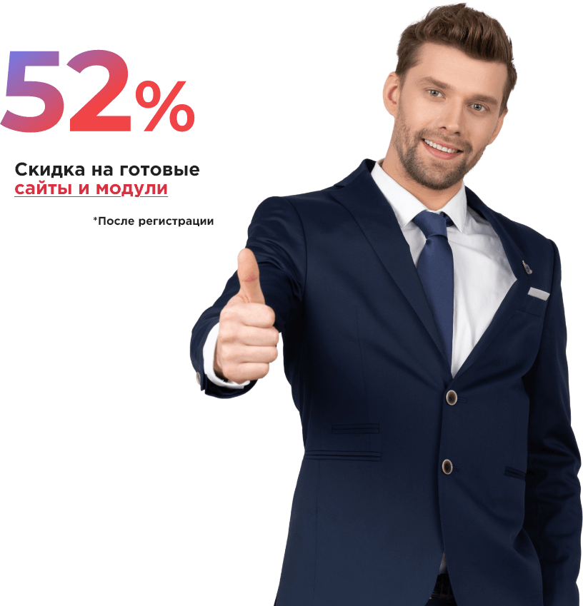 Пройдите простую регистрацию и получите скидку от 57% на готовые сайты и модули