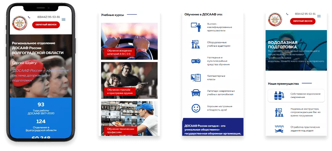 ДОСААФ России сегодня - это уникальная общественно-государственная оборонная организация, связывающие звено между армией и обществом. Поэтому в дизайн макете мы использовали государственно-военную символику и триколор. Простая структура под широкую целевую аудиторию, но при этом дизайн существенно отличается и выделяет ДОСААФ Волгоградской области на фоне других регионов.